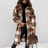 Høst Tykk Rutete Plysj Løs Jakke Dame Vinter Langermet Knappelukking Kasjmir Damejakker Vintage Pluss Størrelse Varme Kåper Kvinne med Lomme 24673