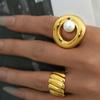 Brass Plated Real Gold Niche Design Abstract Art Pearl Ring Fashionable Hollow Curve Joint Ring 678