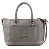 Made from double face leather and polished pebble leather. Features zip-top closure, fabric lining, and side open compartments. Handles with a drop of 4 3/4, and a detachable strap with a drop of 22 for shoulder or crossbody wear. Dimensions are 9 3/4 (L) x 7 1/2 (H) x 4 3/4 (W).