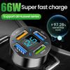 66W USB Car Charger PD QC3.0 Fast Charging Adapter 4 USB + 2 PD Ports with Voltmeter for iPhone Samsung Xiaomi