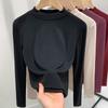 European Solid Color Temperament Fishbone Long-sleeved T-shirt for Women Autumn and Winter New Slim Fit Inner High Waist Short Bottoming Shirt Top