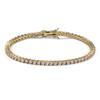 Tennis bracelets made from moissanite are strong, bright white, and sparkle just as brightly as diamonds. The moissanite used was cut into "eight perfect hearts and eight perfect arrows." Less than 1% of moissanite fits the 8" Heart & Arrow cut. The classic, elegant style looks great on everyone.