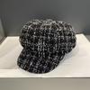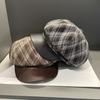 Woolen herringbone leather brim newsboy hat women's autumn and winter new British retro thermal celebrity style cap