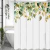 Green Leaf Shower Curtain, Bathroom Decorative Shower Curtain, Waterproof Shower Curtain with Hooks
