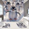 Cute little penguin bathing yellow duck shower curtain, bathroom decorative shower curtain, waterproof shower curtain with hooks