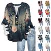 Women's Fashion Casual Button V-Neck Seven Sleeve Vintage Printed Shirt Top
