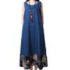 Sleeveless Maxi Size L [UQQA] Women's Dress, Summer, V-Neck, Length, Resort, Pockets, All-Over Print, Long, Relaxed, Date, Lightweight, Girly,