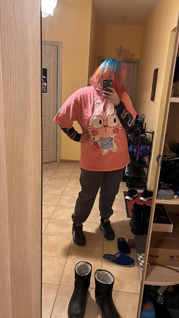 til deg: 4XL, byste: 150 cm, lengde: 77 cm, erme: 57 cm, anbefalt vekt: 125-150 kg.
