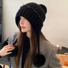 Women's Outdoor Leisure Cute Hairball Pullover Hat Autumn and Winter Knitted Windproof Warm Wool Hat
