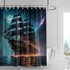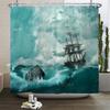 Sailboat Waterproof Bathroom Shower Curtains Sea Navigation Bath Curtains 3d Printing With Hooks 180*180cm Washable Cloth