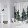 Forest Green Shower Curtain with Hooks, Extra Long, Mold and Mildew Resistant, Bath Liner, Tree Print