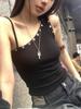 European and American Gyaru Wear Sloping Shoulder Knit vest Short American Black Sleeveless T-shirt Slim fit Slimming off-Shoulder Top