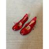 Sheepskin version~ French cross-strapped red Mary Jane shoes flat single shoes women's shallow mouth evening wind fairy ballet shoes