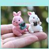 3Pcs Pink Rabbit Figurines Model Decoration Lovely Train Bunny Craft Ornament Cartoon Animal Statue Model Cupcake Topper
