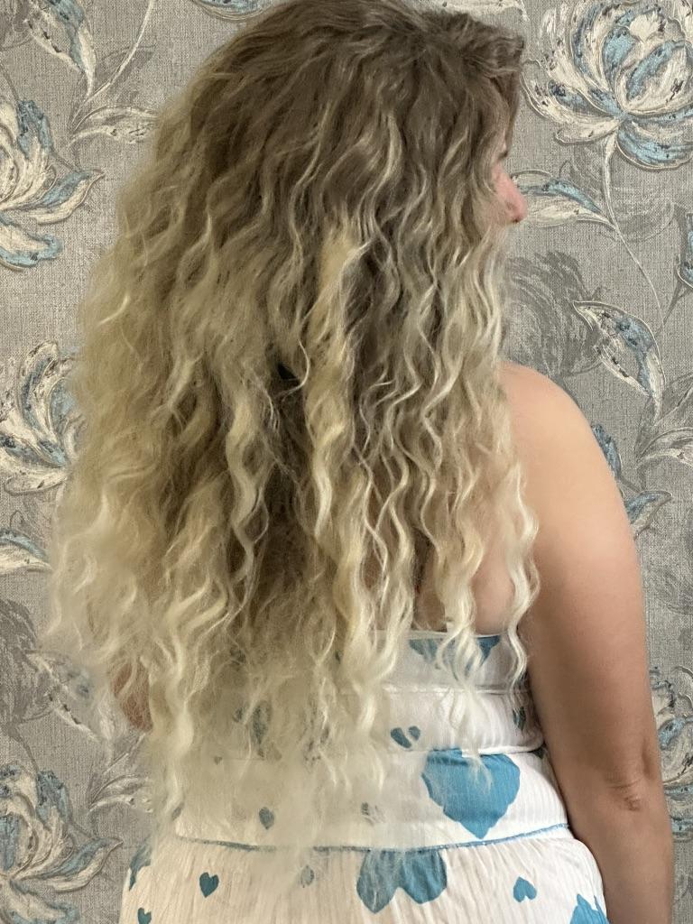 Женский парик с длинными вьющися локонами, просто замечательный, натуральный. Цвет красивый, светлый, раньше заказывала только рыжий цвет, счас решила поменять образ. Товаром довольна. Продавцу огромное спасибо!